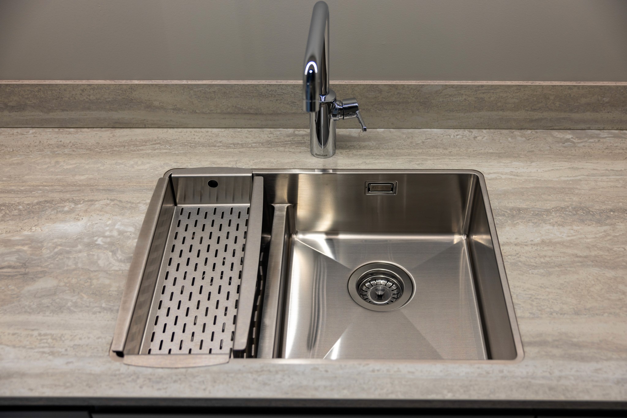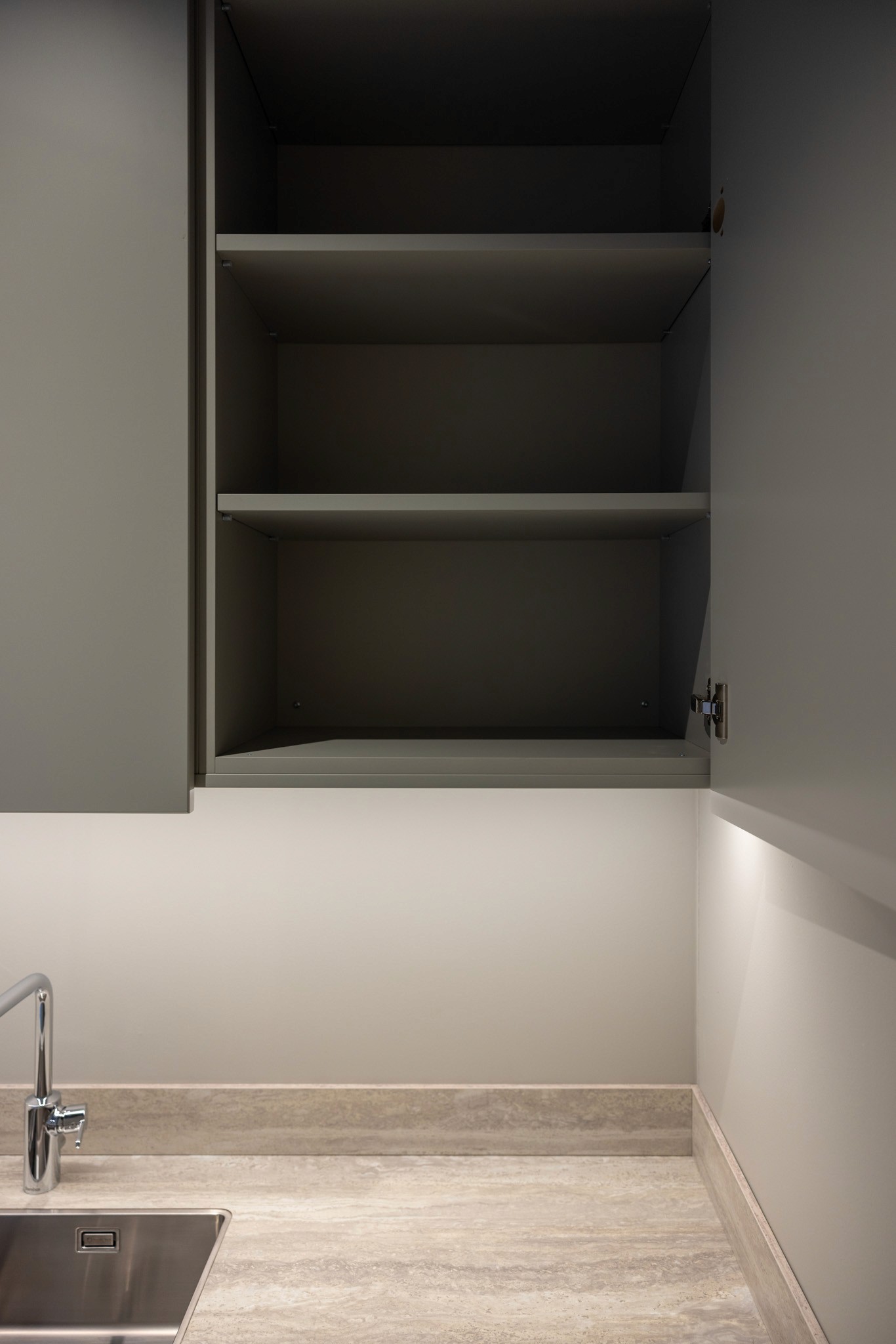 Hämtas på plats i Skellefteå. Kan skickas direkt till kund mot avgift. Belysning, kran och vask ingår i priset.En kompakt grovkök som passar utmärkt i tvättstugan eller som ett praktiskt extra kök. Luckorna är målade och utrustade med en infälld grepplist, medan överskåpsluckorna är förlängda för att dölja belysningen och fungera som handtag. Designen är enkel och stilren, vilket gör att köket smälter in i sin omgivning. Belysning vask och blandare ingår.